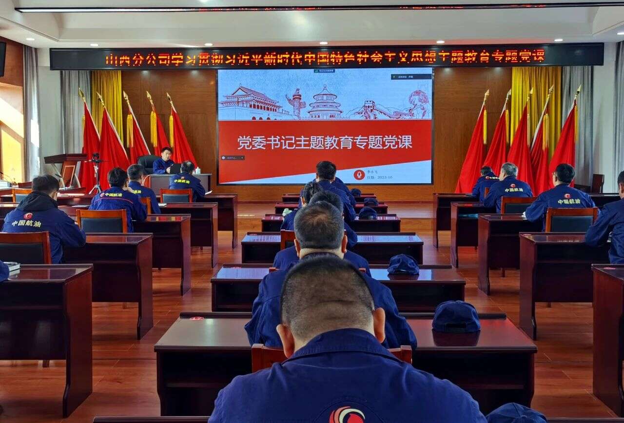 为深入开展学习贯彻习近平新时代中国特色社会主义思想主题教育,进一步丰富拓展学习形式,打造有深度、有温度、有力度的党课课堂,推动主题教育走深走实,近日,中国航油山西分公司党委书记李小飞以“在接续奋斗中让组织放心、让个人成长”为题讲授专题党课,带领全体党员干部从“个人发展、队伍建设、境界提升”三个方面进行学习交流,取得了良好效果。公司领导、各党支部书记、全体党员、入党积极分子参加本次会议,供应站人员视频参会。