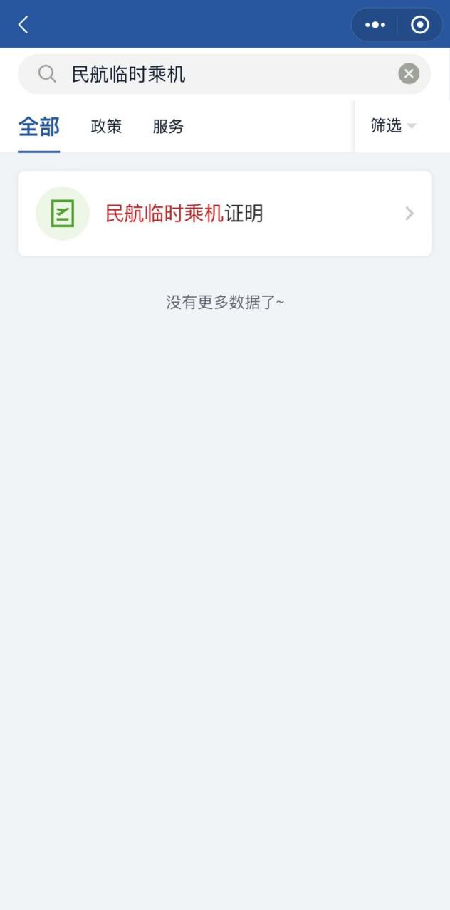第二步:打开国务院客户端小程序,进入“民航临时乘机证明”服务。