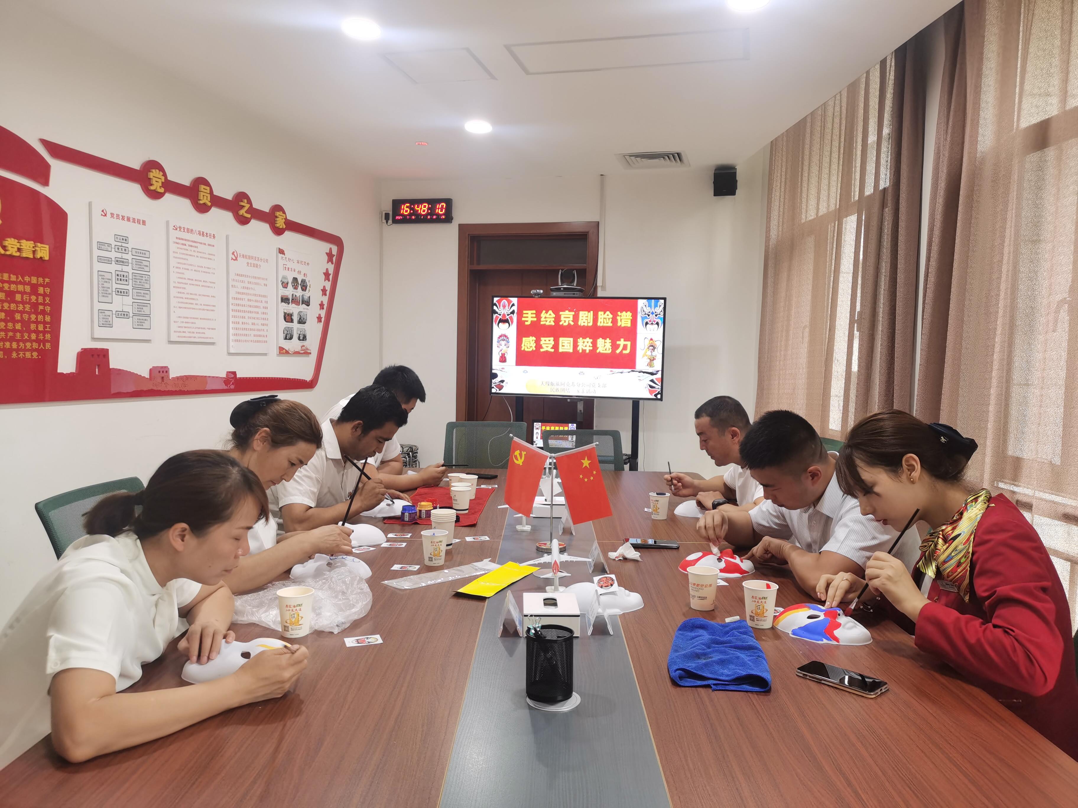 (通讯员 程梅玲)为大力弘扬传统文化,进一步丰富员工的文化生活,7月15日,天缘航旅阿克苏分公司围绕铸牢中华民族共同体意识这条主线,举办“手绘京剧脸谱 感受国粹魅力”主题活动,旨在宣扬戏曲文化,带领大家感受中国传统文化的博大精深与无限魅力,让大家近距离体验“非遗”文化,在实践中探索感受国粹魅力,引导各族员工树立正确的“五观”,增强对伟大祖国、中华民族、中华文化、中国共产党、中国特色社会主义的认同。