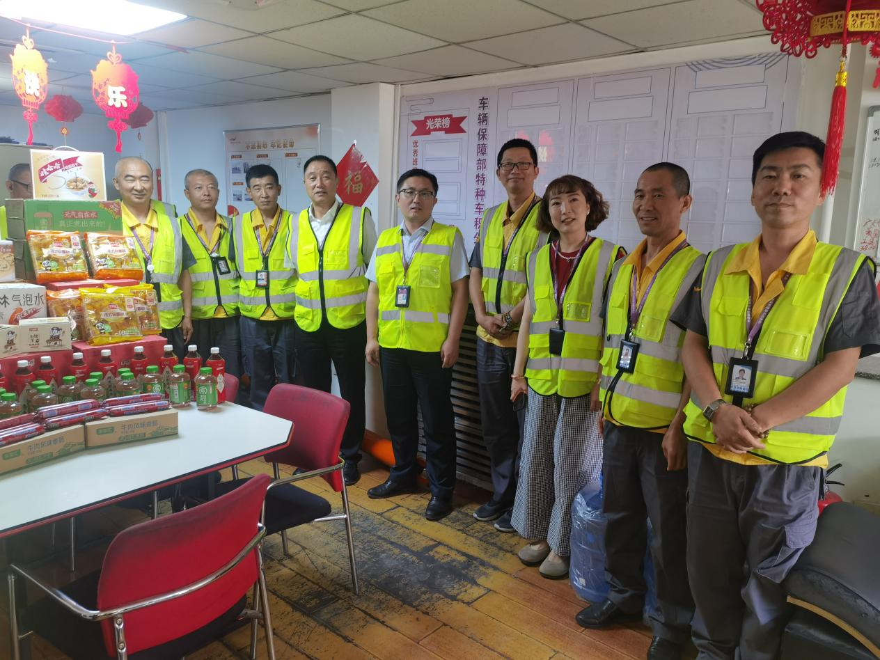 当天上午,乌鲁木齐航空董事长全勇、维修副总裁兼工会主席李炳毅带领慰问组一行,前往海航技术新疆维修基地、AOC、特种车队值班室、T2航站楼职工之家等海航航空集团新疆辖区各单位一线岗位中,将精心准备的防暑降温物资送至一线员工手中。
