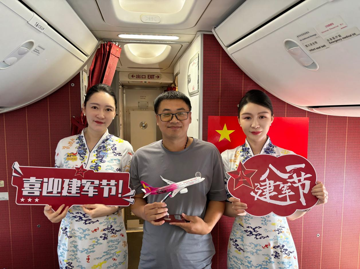 为庆祝中国人民解放军建军97周年,进一步弘扬爱国主义精神,表达对中国人民解放军的崇高敬意,对中国共产党的深切感恩,8月1日,海航航空集团旗下乌鲁木齐航空在乌鲁木齐飞往上海浦东的UQ2599航班中开展“迎八一,念党恩”主题航班活动,为旅客带来了一场具有独特意义的飞行体验。