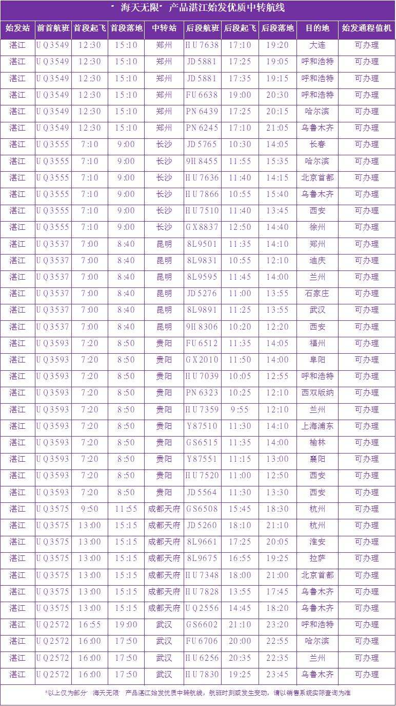 (通讯员 马玉薇)为进一步提升湛江区域航线网络通达性,海航航空集团旗下乌鲁木齐航空积极推动“海天无限”中转联程产品新增湛江机场作为通程始发机场,从湛江始发的国内联程航班可以实现通程值机、行李直挂等服务,为广大旅客的出行带来了更多的选择和便利。