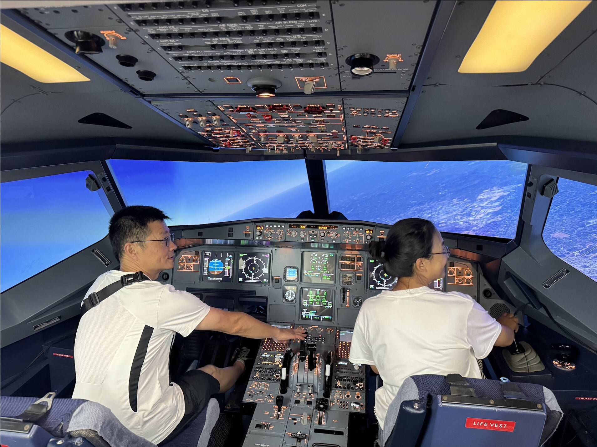 在培训中心,家长们首次看到飞行模拟器,纷纷坐进空客A320模拟驾驶舱,亲身体验了飞行员的乐趣与责任。一位母亲在体验后激动地说:“这是我第一次这么近距离的感受飞行,原来小小的驾驶舱内有这么多精密的仪器设备和规范的操作流程”。在管制模拟机室,家长带上耳机,手握PTT,亲自感受了子女未来工作的紧张与荣耀,那份激动与自豪之情溢于言表:“原来,这就是孩子每天默默守护的天空,每一声指令都承载着责任与使命”。
