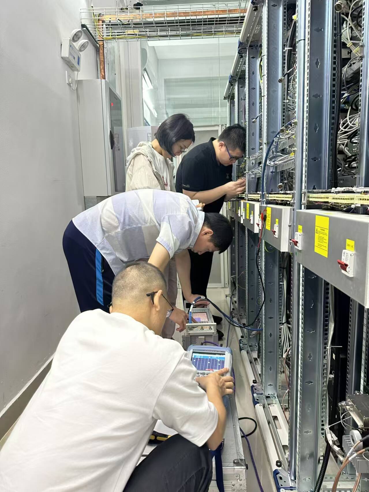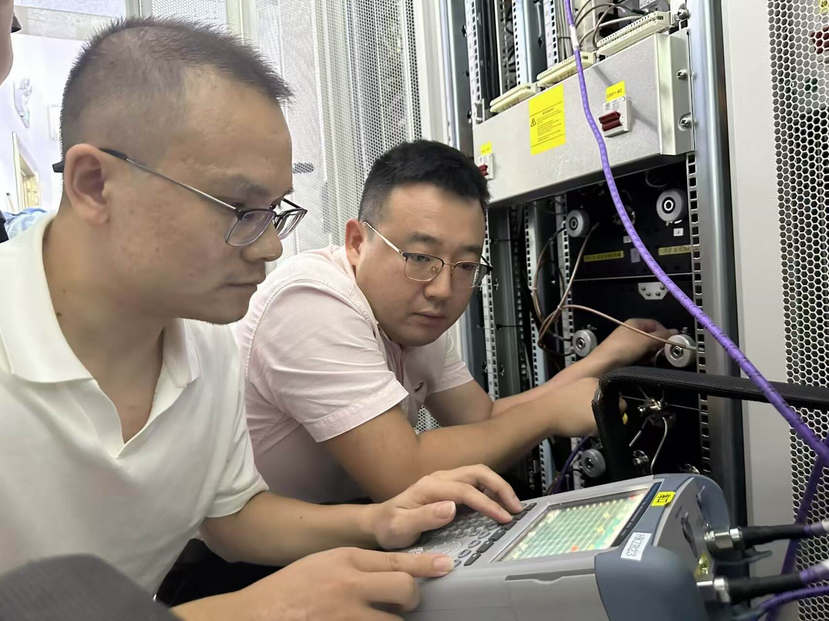 在此次巡检中,来自中南各地的甚高频技术专家以高度的责任感和专业的技术能力投入工作。他们穿梭在电话站、云龙雷达站、旧州雷达站的甚高频设备机房,巡检小组成员细致地检查了设备的各项核心指标:从发射功率到接收灵敏度,从天馈线驻波比到发射频谱的测试,每一个环节都进行了严格的测试和评估,不放过任何一个可能影响通信质量的细节,从数据的精确记录到问题的现场解决,力求万无一失。他们手持专业仪器,精准测量每一项参数,认真记录每一个数据,共完成了164台甚高频电台的性能检测,101个腔体滤波器的检测调整,以及上千项参数的记录。