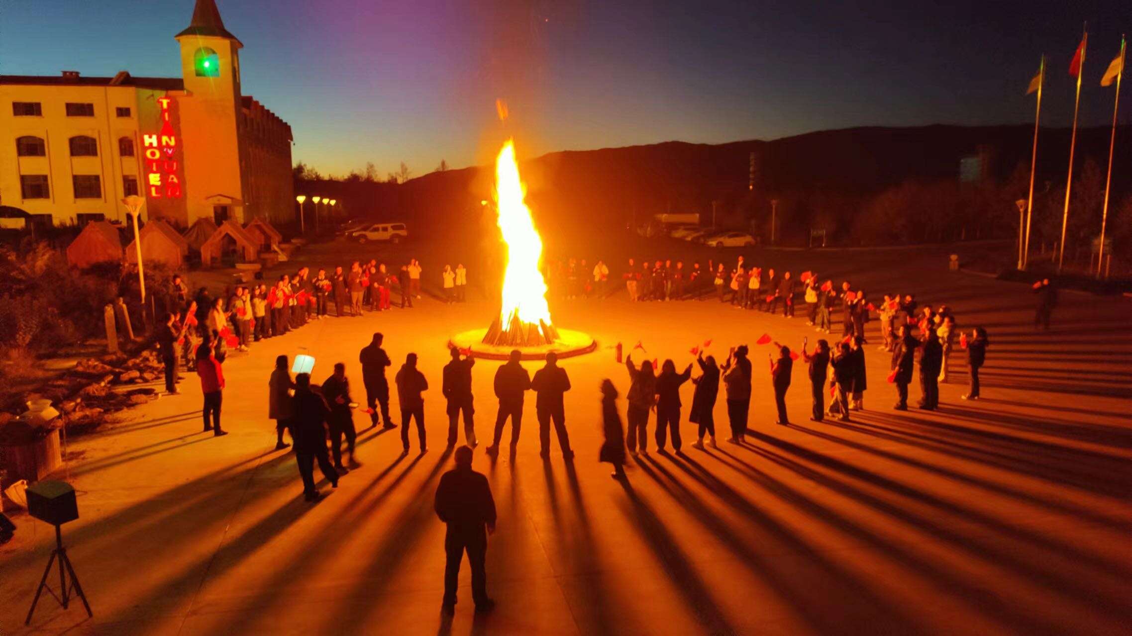 晚会伊始,喀纳斯机场与天缘山庄的相关负责人分别发表了热情洋溢的致辞,向所有参与晚会的朋友们致以最诚挚的节日问候和欢迎。他们表示,此次联合举办篝火晚会,不仅是为了庆祝祖国的生日,更是为了加强喀纳斯机场与天缘山庄之间的合作与交流,为游客们提供更加丰富、优质的旅游体验。