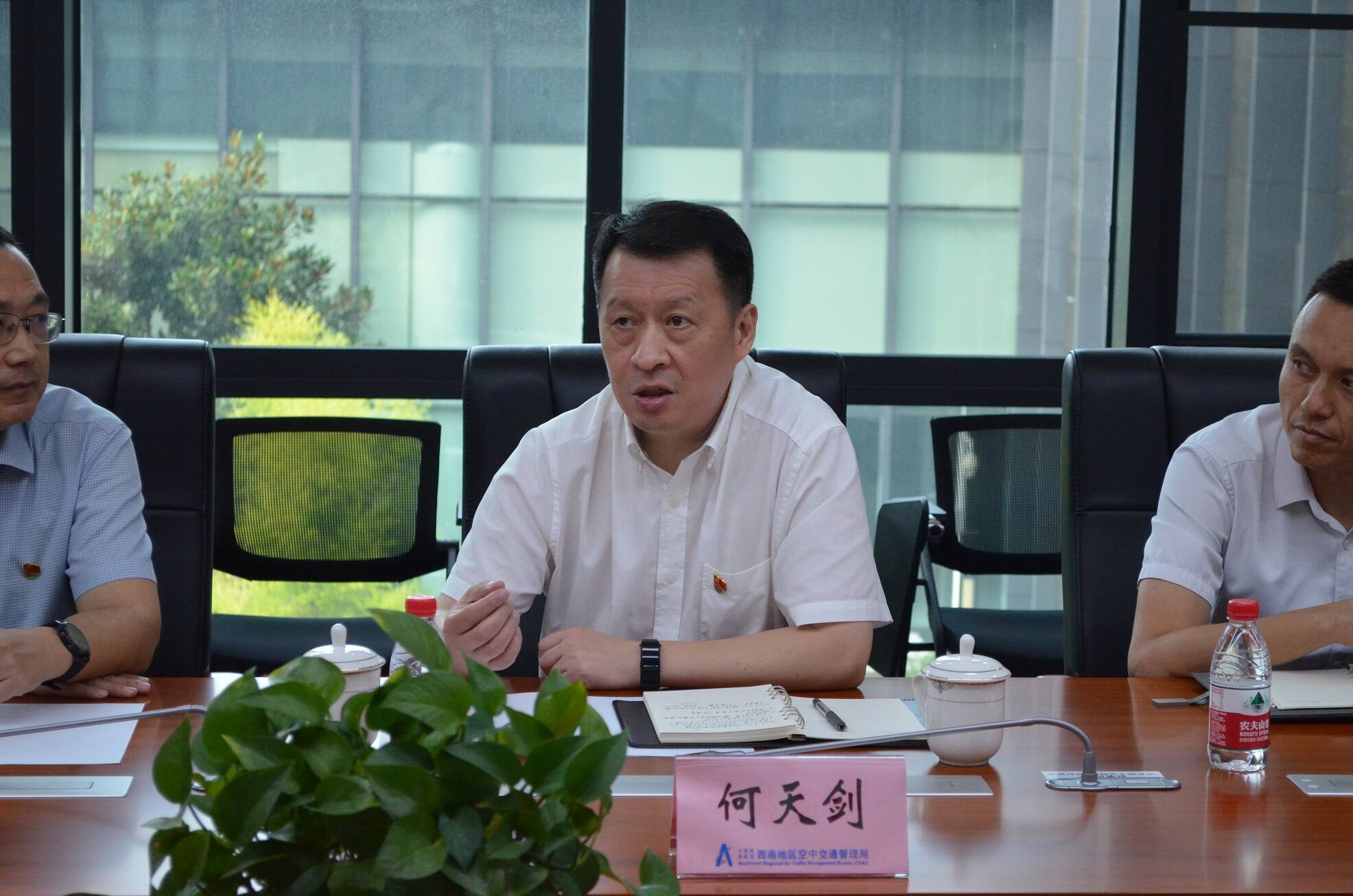 近日,西南空管局空管中心终端管制二室与淮州机场运营管理公司开展了“交流沟通强协作,共促低空新发展”主题党日活动,西南空管局局长何天剑以普通党员身份参加所在支部的组织生活。四川通航投资公司董事长周勇,淮州机场运营管理公司董事长赵杰、总经理王文韬以及淮州机场管制员代表一行,参观了成都终端管制大厅。
