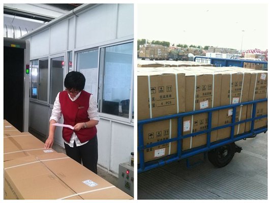 图:南京机场货运:每一票收运的国际货物,工作人员都要认真仔细检查、过磅!确保收运货物安全!摄影:张敏!