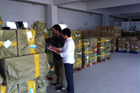 图:南京机场货运:一批国际出港货物正在加固包装、收运入库!你必须认真检查、一件、一件检查、一件一件的打膜,为的是货物运输的安全,让客户放心!摄影:张敏!