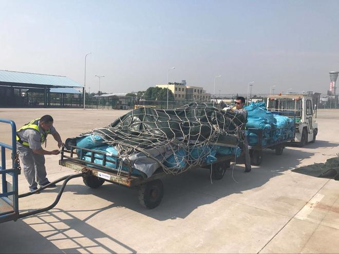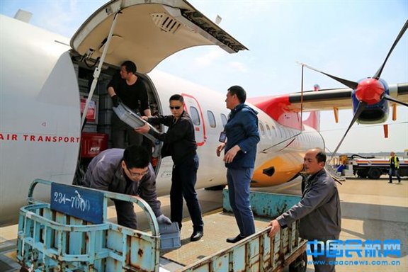 图:南京禄口国际机场一批国际包机货物正在装机!