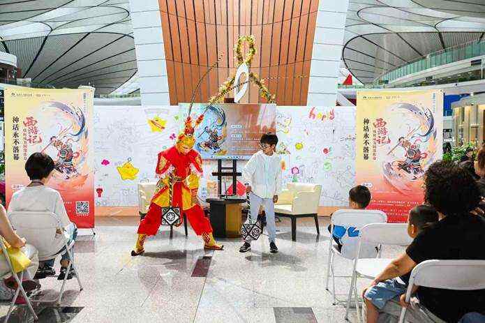 此外,在旅客服务方面,端午邂逅六一,大兴机场在航站楼举办创意涂鸦墙、造型打卡牌、互动手工制作等趣味活动,“趣赏中华文明”系列读书活动中“美猴王”闪亮登场,为旅客们在大兴机场留下专属旅途回忆。