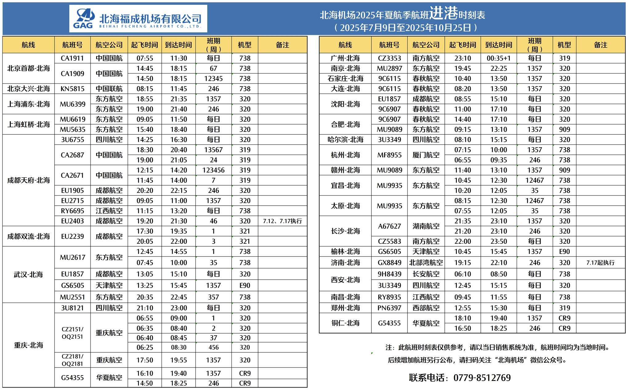 暑假“打飞的”游北海!新开加密多条航线航班→ 机场要闻 航线航班 25年7月11日 编辑 通讯员mk 取消关注 关注 私信 暑运期间,北海机场积极携手各大航空公司,精心策划并增开了多条热门航线航班,新增北海-南昌、北海-铜仁-重庆航线,加密飞往长沙、重庆、杭州、成都、石家庄、大连、榆林等地航班。 大家可以在全国各地“打飞的”,轻松抵达北海,开启惬意的暑假之旅。 北海机场