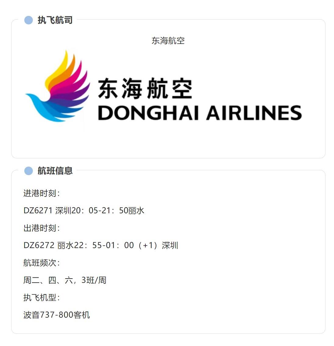 丽水机场8月2日起新开深圳航线 机场要闻 航线航班 7月24日 编辑 通讯员mk 取消关注 关注 私信 自8月2日起,丽水机场将新开丽水至深圳的定期客运航线,为您的出行再添便捷新选择!以后从丽水到深圳,无需再中转,一路直达,说走就走! 东海航空丽水机场