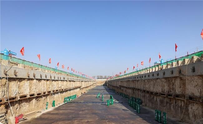 4号下穿通道是优化机场地面交通流线的核心工程,位于机场南垂滑西侧,承担着下穿南垂滑、连通两侧服务车道的重要使命。该通道设计为双向2车道,标准断面净宽11.5米,总长度684米,由276.5米箱涵段、318米敞口段及89.5米地面段构成。本次验收通过的主体结构是工程的技术难点所在,其施工面临基坑开挖最大深度达11.5米、附属雨水泵房深13.5米的挑战,主体结构浇筑混凝土总量约2.84万立方米,工程体量大、技术要求高。