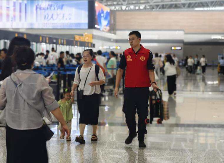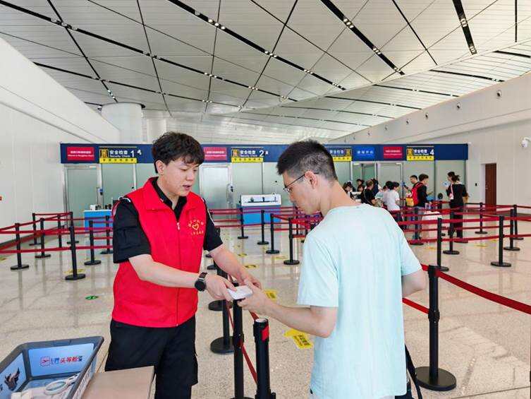 暑运期间,青年志愿者将服务延伸至旅客出行的每一个环节。在值机柜台、安检通道、登机口等核心区域,他们实时解答旅客疑问、协助旅客使用自助值机设备、引导排队秩序,用主动服务助力旅客顺畅出行。聚焦无人陪伴儿童、残障旅客、“银发”旅客等特殊群体,河北机场集团志愿者推出“专属护航”服务,陪伴旅客值机、安检、登机。协助老人操作自助设备、为无陪儿童读绘本度过候机时光、为轮椅旅客运送行李……志愿者用点滴行动践行着“人民航空为人民”的行业宗旨。截至8月30日,志愿者累计服务轮椅旅客1100余人次、无陪儿童2000余人次。同时,石家庄机场航站楼内还开设了“爱心义诊”服务专区,志愿者为旅客提供免费问诊量血压等爱心义诊服务,现场为旅客测量血压、心率,并从疾病诊治和预防角度,讲解常见病防治,响应国家“减重”号召,为旅客讲解控糖降压、合理膳食等知识。