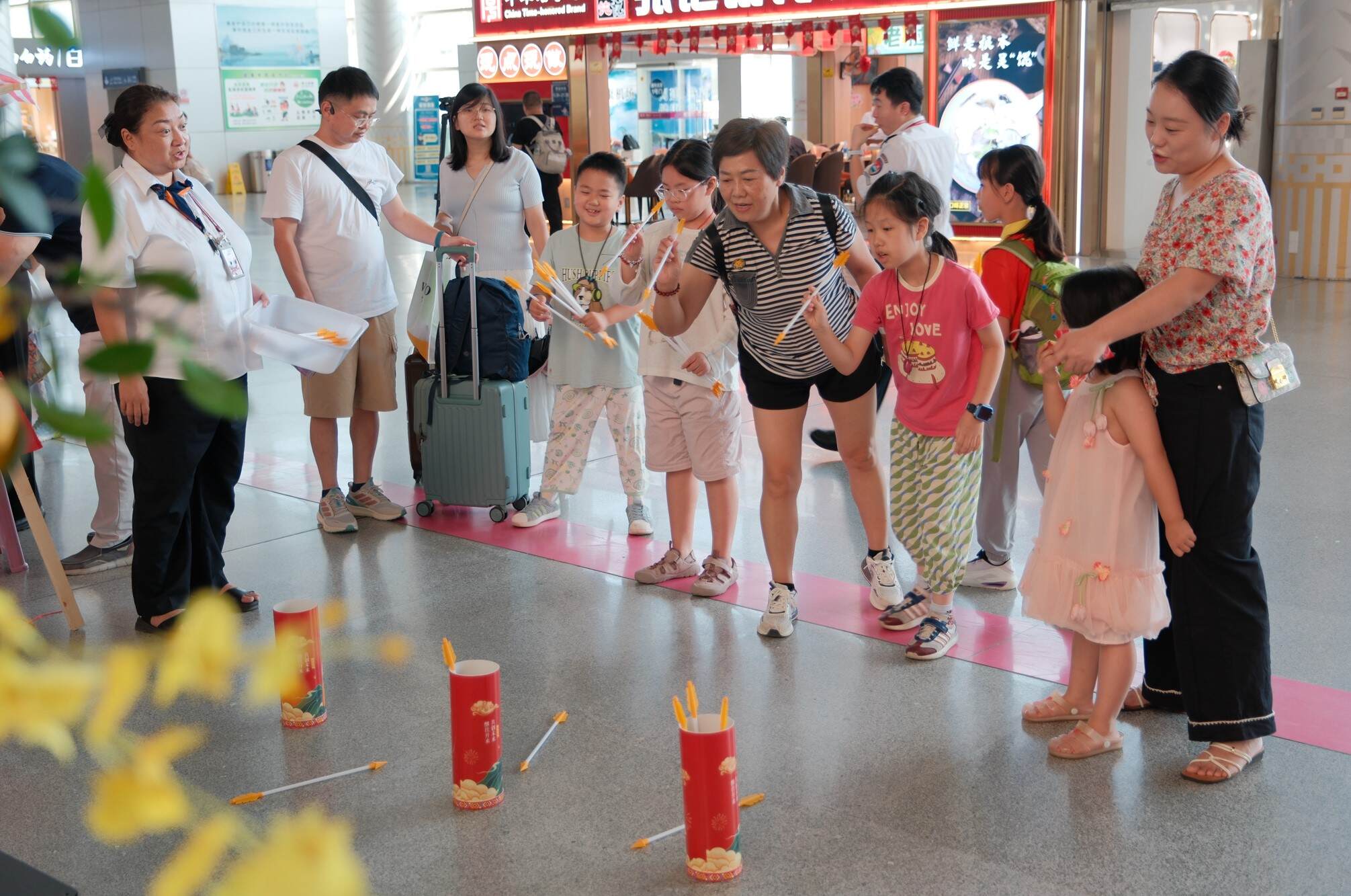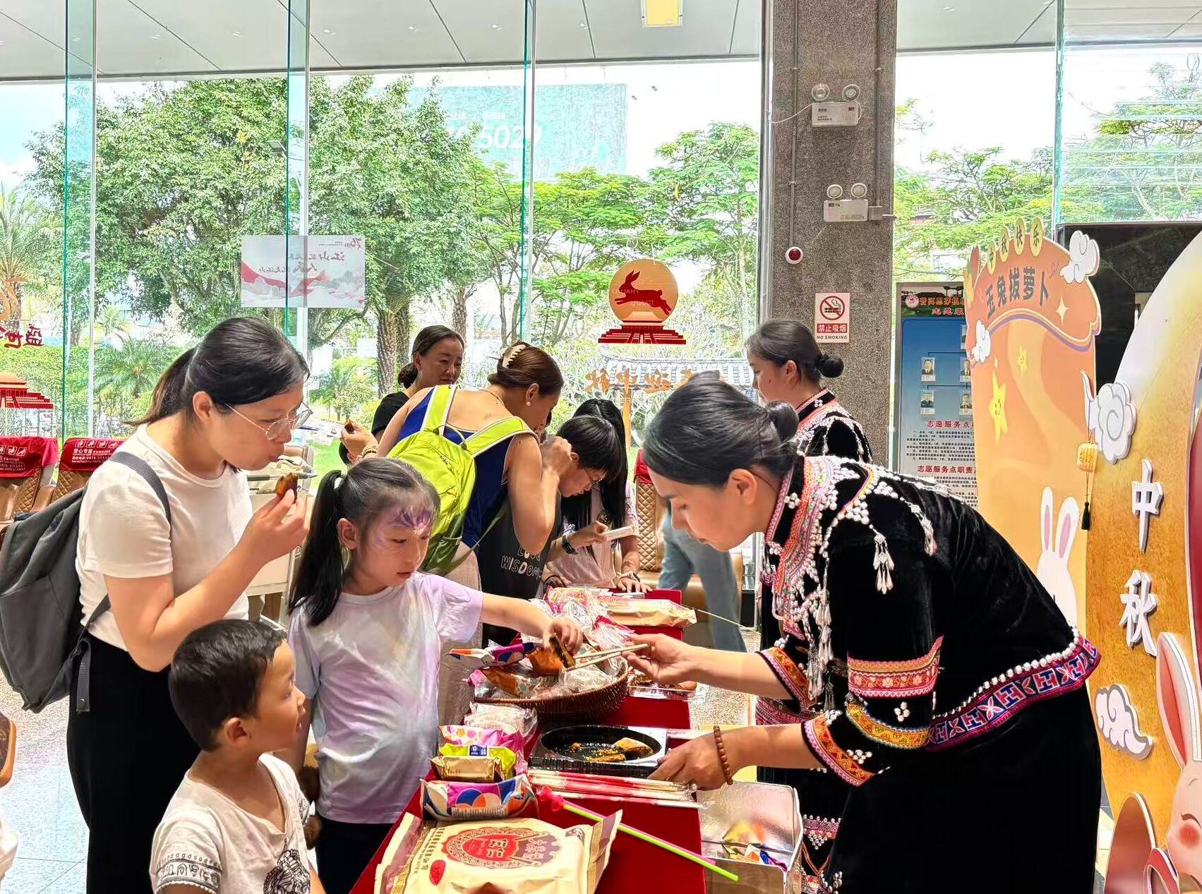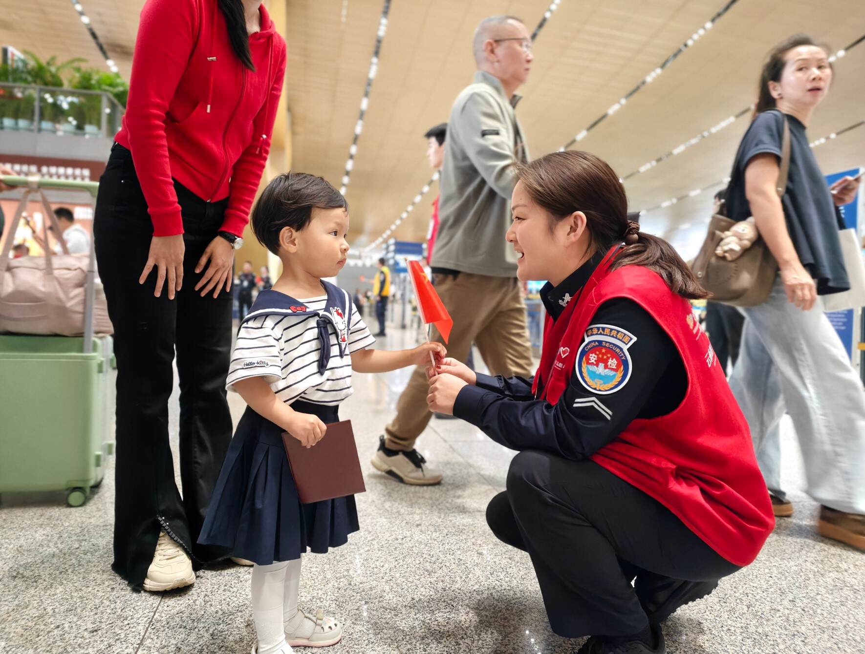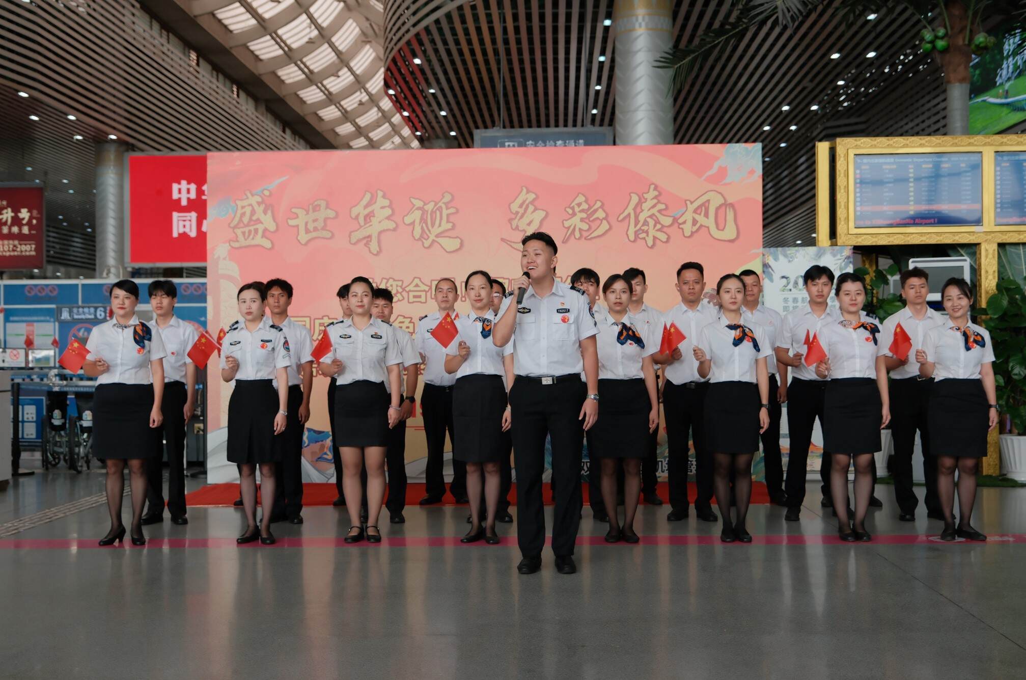 走进云南省内各机场一面面鲜艳的五星红旗迎风飘扬,国旗、鲜花组成的一抹抹鲜艳的“中国红”,让过往旅客感受到庄重而浓厚的节日氛围。昆明机场航站楼核心区域“普洱生活体验场”,生动复刻云南“生态绿色、文化多彩”的生活美学,成为展示云南生态之美、文化之韵的亮丽窗口。西双版纳机场将传统中秋与傣家风情巧妙融合,为往来旅客打造一场沉浸式的傣味中秋盛宴。迪庆香格里拉机场歌舞快闪活动伴着《万疆》悠扬的旋律,用标准、优美的手语演绎歌曲意境,每一个动作都饱含对祖国山河壮阔、国泰民安的赞颂。大理机场工作人员身着白族传统服饰、普洱思茅机场工作人员身着拉祜族传统服饰、腾冲机场工作人员身着傈僳族传统服饰,民族风情与暖心服务交织相融,成为机场里一道独特的风景线。保山机场、昭通机场、临沧机场、佤山机场等机场DIY制作月饼、猜灯谜、知识问答、送香囊、红灯笼等互动活动,吸引旅客驻足参与,现场欢声笑语不断,让旅客出行途中充满温度与惊喜。