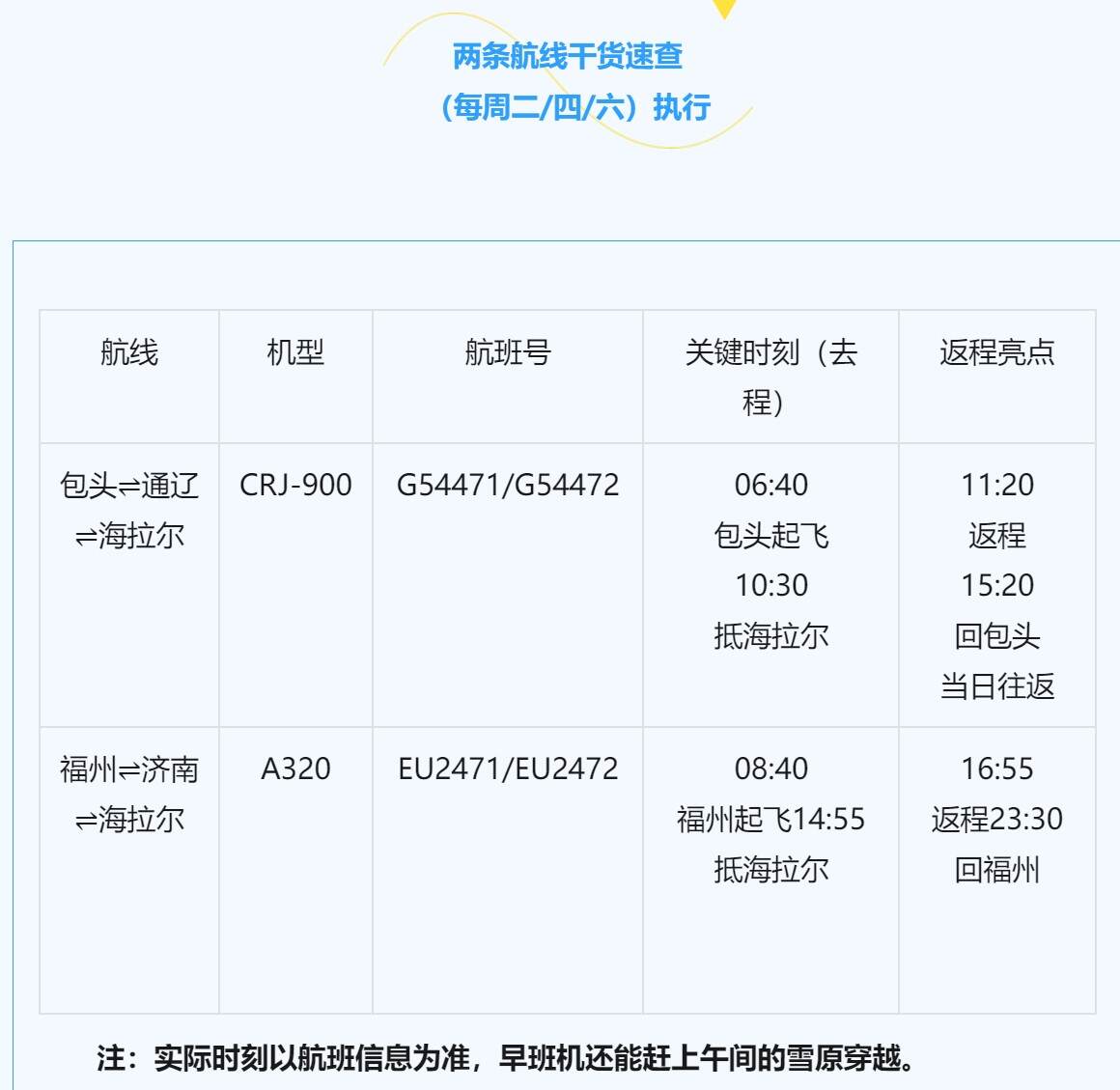 呼伦贝尔新增两条航线 机场要闻 航线航班 25年11月3日 编辑 通讯员mk 取消关注 关注 私信 日前,呼伦贝尔机场机坪上的首航仪式格外热闹。包头⇌通辽⇌海拉尔、福州⇌济南⇌海拉尔两条新航线开通。 这是呼伦贝尔机场,冬季航线扩容的重要举措,进一步织密了南北东西的空中走廊。 机场发力:今年已通航43个国内城市 此次新航线开通后,不管是包头游客周末飞来看雪,还是福州旅客串联济南研学与草原度假,都有了更灵活的选择。 “航线越来越密,来呼伦贝尔更方便了。”常来采风的摄影爱好者李先生说。机场方面表示,未来还将持续优化航线布局,用航空力量撑起冬季旅游和地方经济发展。 呼伦贝尔机场