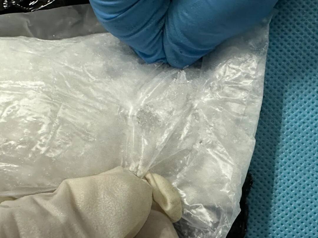 拆开灯具的外壳后,现场关员发现灯具内部夹藏着用黑色塑料袋层层包裹的白色晶体。经送技术机构检测,上述白色晶体均含有甲基苯丙胺成分,重4964克。