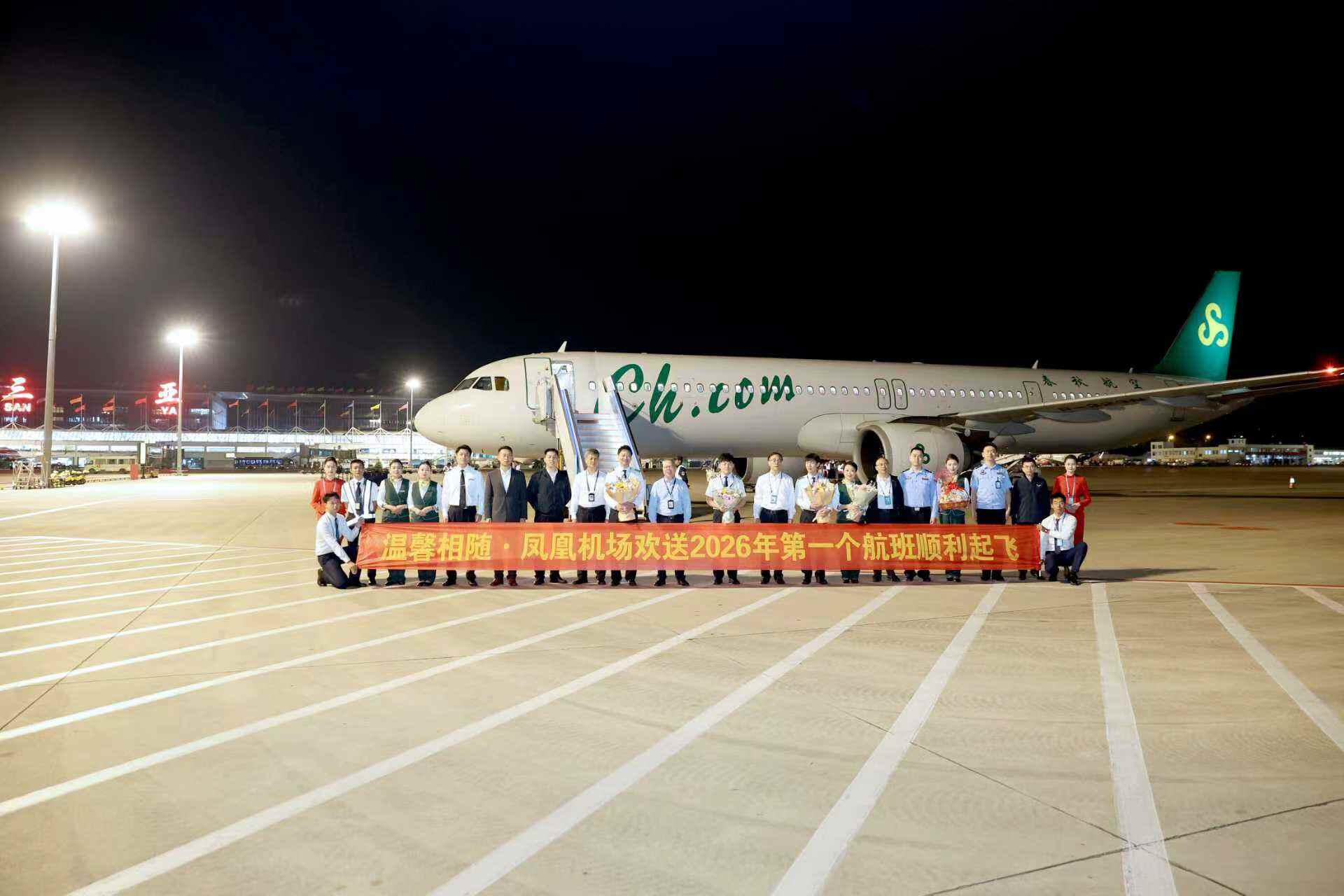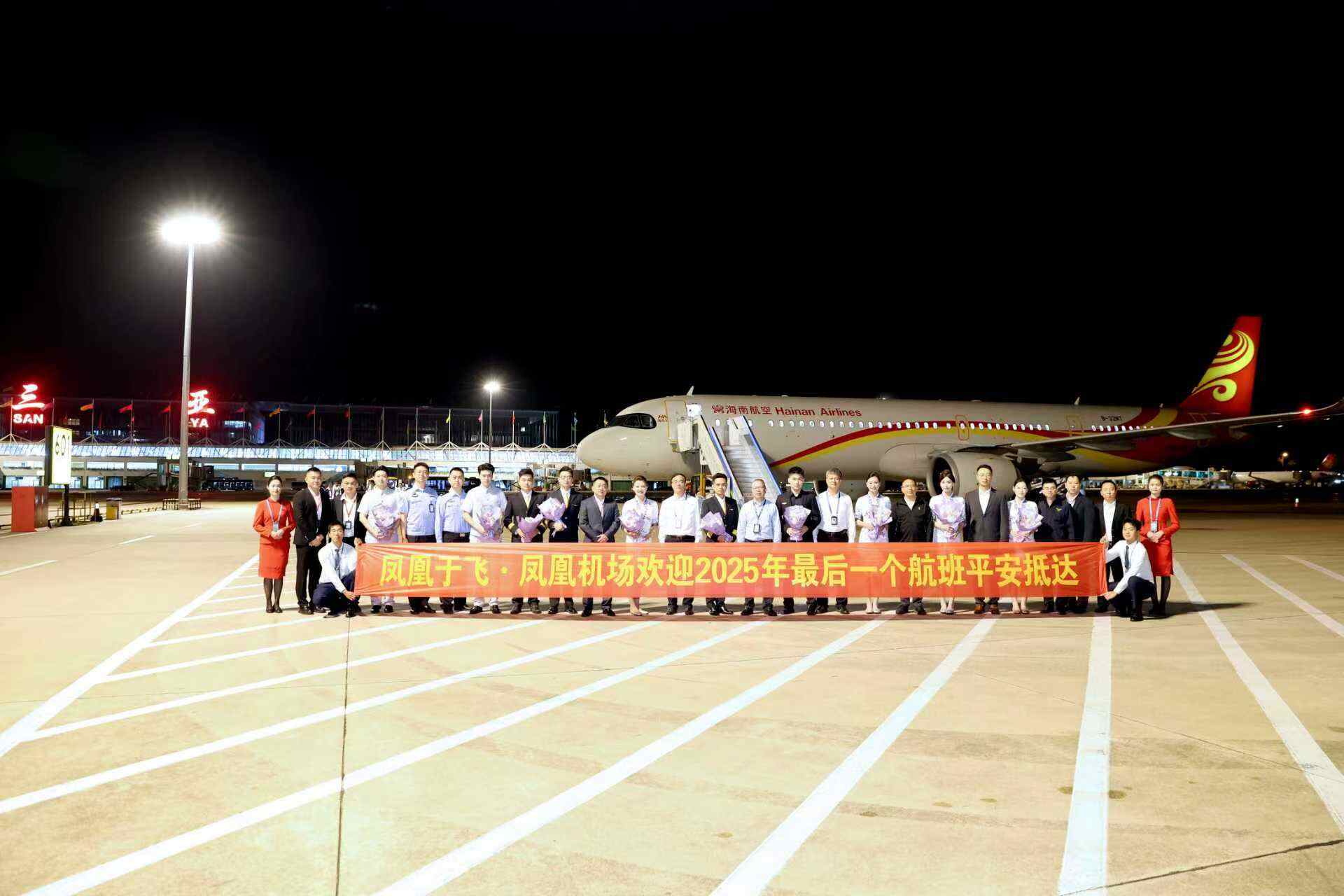 2025年12月31日晚,海南控股旗下三亚凤凰国际机场(以下简称“三亚机场”)在停机坪举行新年航班迎送活动,迎来2025年最后一个进港航班的平稳降落,并热烈欢送2026年首个出港航班顺利启航。随着象征年度收官与新年开局的航班相继起降,三亚机场2025年的运输保障任务画上句号,同时也正式开启了2026年的崭新序幕。