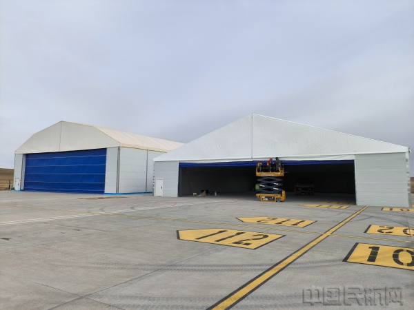受本轮疫情影响,镶黄旗机场短途运输暂时停航,且在明年锡林郭勒盟陆续将有5家通用机场将投入使用,为了抢占航班空窗期及其他通用机场建设的窗口期,镶黄旗机场借此机会抢抓机遇补齐短板,提升硬件设施设备保障能力,利用空窗期在20余天内完成了机库的搭建并正式投入使用。