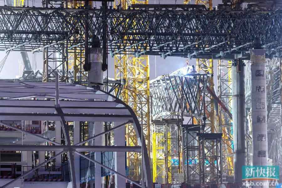 新快报讯 记者从施工单位获悉,中建三局广州白云国际机场三期扩建工程T3航站楼项目的建设正如火如荼地推进,目前本工程主体结构已全面封顶。
