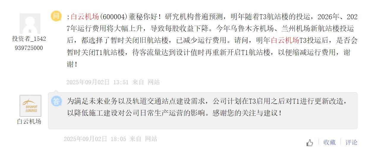 白云机场:公司计划在T3启用之后对T1进行更新改造 机场头条 建设 9月4日 编辑 通讯员mk 取消关注 关注 私信 近日,有投资者在投资者互动平台提问:明年白云机场T3投运后,是否会暂时关闭T1航站楼?待客流量达到设计值时再重新开启T1航站楼,以便缩减运行费用。 白云机场9月3日在投资者互动平台表示,为满足未来业务以及轨道交通站点建设需求,公司计划在T3启用之后对T1进行更新改造,以降低施工建设对公司日常生产运营的影响。 广州白云机场航旅资讯