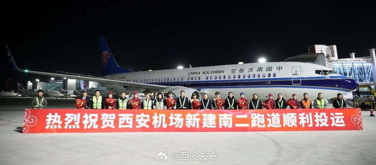 12月25日上午,南方航空CZ8822航班从西安咸阳国际机场新建南二跑道起飞,标志着机场正式迈入“三跑道”时代,这也将机场年旅客保障能力提升至8300万人次,货邮吞吐量可达100万吨。