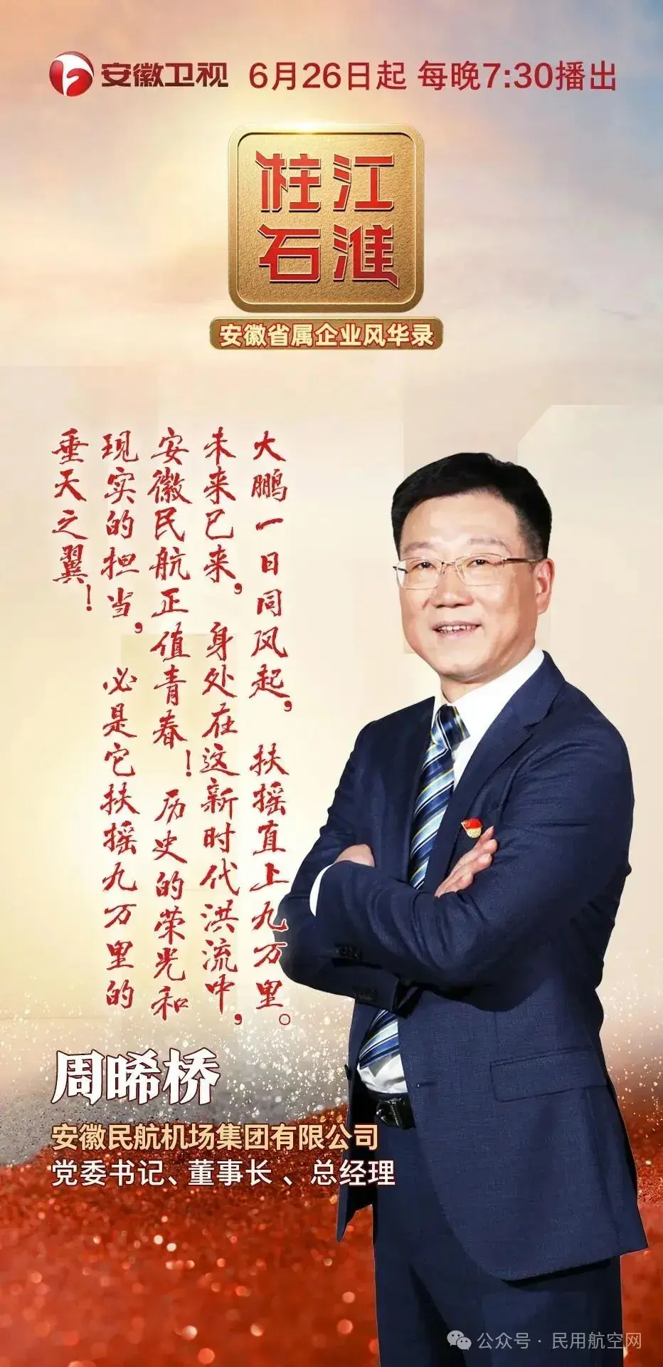在任期间,周晞桥主导推进了合肥新桥机场改扩建、黄山机场航旅融合等多个安徽民航重点项目,推动省内机场基础设施升级与业态融合发展;2023年,其任职进一步拓展,兼任安徽省人大城乡建设环境与资源保护委员会委员,兼顾行业发展与地方相关领域履职;2024年9月,他仍以集团党委书记、董事长、总经理身份,代表安徽民航机场集团与中国民航大学签署战略合作框架协议,推动校企合作赋能民航人才培养与产业发展。