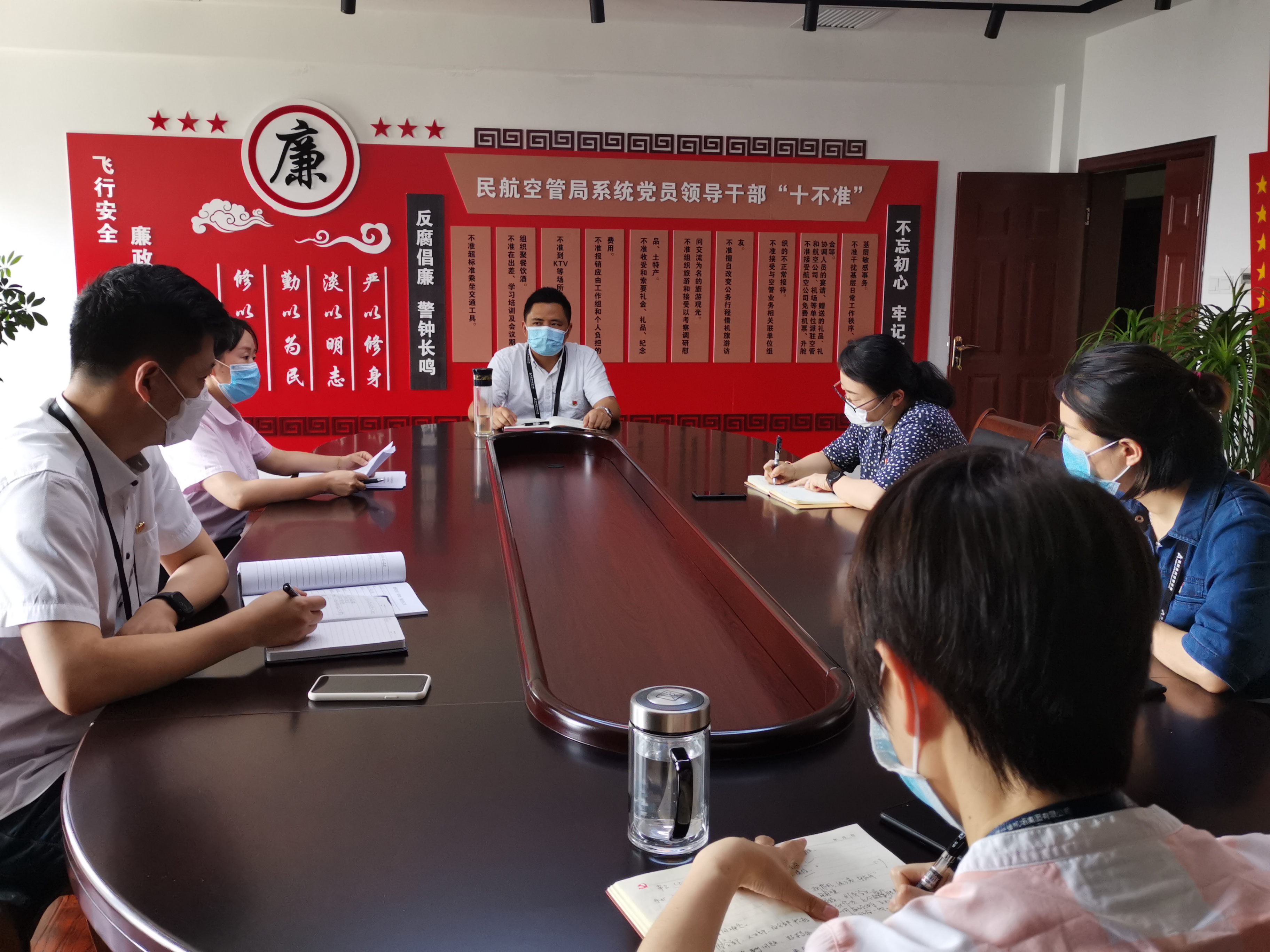 2020年5月9日,贵州空管分局管制运行部综合技术党支部召开专题支委扩大会,结合 “抓作风 强三基 守底线”行业安全整顿和“三个敬畏”宣传教育活动开展批评与自我批评。管制运行部党总支书记李凡、副主任石毓参加会议。