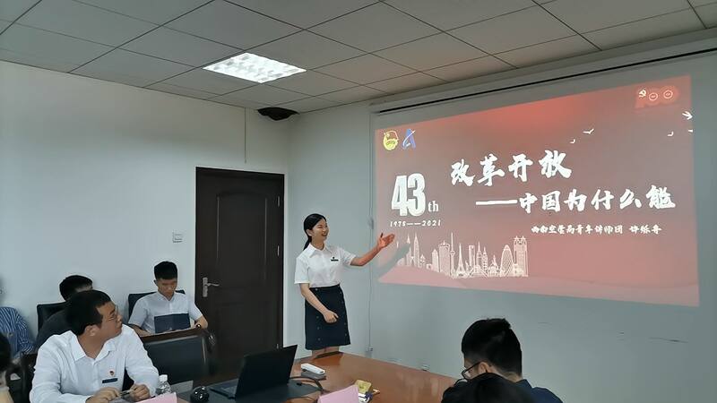 会上,空管公司团委副书记吴可带领团员青年重温入团誓词,本次宣讲活动正式开始。三名青年讲师团宣讲团成员分别以《乘风破浪,一路“犇”腾》《源头活水,奔涌至今》《改革开放——中国为什么能》为题展开宣讲。随后,团员青年们积极分享课堂感悟。本次宣讲活动的最后,空管公司党委书记裴伟与团员青年们共同学习回顾了中国共产党历史。回顾1919年5月4日,青年翻开了我国新民主主义革命的篇章的,为中国共产党的成立在思想上、干部上准备了条件,回望我们党革命、建设和改革不同历史时期,一代又一代热血青年与国家同呼吸、共命运,不怕牺牲、矢志奋斗,坚定不移跟党走,创造举世瞩目的中国发展奇迹,为中华民族复兴,中国人民幸福、国家富强做出杰出贡献。毛主席对青年寄托的讲话指出“世界是你们的,也是我们的,但是归根结底是你们的。青年人朝气蓬勃,正在兴旺时期,好像早晨八九点钟的太阳。希望寄托在你们身上。”青年作为新时代的奋斗者,要牢固树立永久奋斗的伟大信念。希望在青春奋斗历程中更好地实现自己的人生价值,不断成长进步。