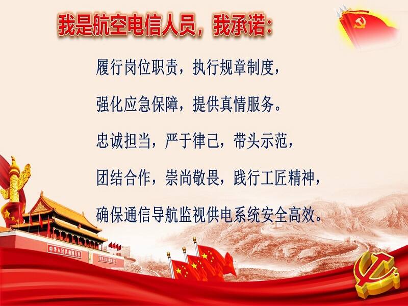 今年是中国共产党建党100周年,也是宁夏空管分局成立二十周年,为持续推进党史学习教育,技术保障部党总支充分发挥守初心,担使命的行动自觉,在重要保障时期和关键时刻,号召全体人员积极行动起来,率先垂范,爱岗敬业。作为一线值班人员,在此做出承诺:履行岗位职责,执行规章制度,强化应急保障,提供真情服务。忠诚担当,严于律己,带头示范,团结合作,崇尚敬畏,践行工匠精神,确保通信导航监视供电系统安全高效。