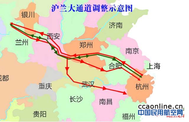 “沪兰大通道”东起上海及江浙地区,西至陕西和甘肃,全长约2000余公里,覆盖我国华东、华北、西北、中南地区,是我国迄今为止最长的一条东西向运行双通道航线。