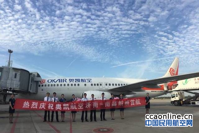中国民用航空网讯:2017年9月8日,奥凯航空新开南昌=济南直飞航线,计划每日一班,由波音737-800型客机执飞,航班号为BK2703/4,去程14:55从南昌起飞,16:45抵达济南;返程18:00从济南起飞,19:45抵达南昌。