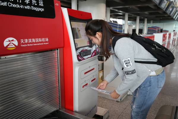 旅客完成自助值机行李托运