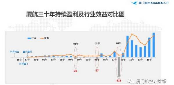 长期以来,厦航经营一直比较稳健,业绩也较为突出,哪怕是在1998年民航价格放开及亚洲金融危机负面影响时,以及后来的2003年“非典”及2008年金融危机等行业比较艰难的时候,厦航都能顶住压力实现盈利,这已经让很多人大为赞叹,更难能可贵的是,厦航的盈利不是几年时间或一段时间,而是长期盈利。在过去的2016年,厦航利润总额再次超过20亿元,实现了“十三五”的良好开局,同时,也创下了自1987年开始30年连续盈利的辉煌纪录,这在民航业内应该说是绝无仅有的,因而在民航业得到普遍赞许,也因为如此,厦航的国际信用评级与美西南航一样,受到国内外金融机构的青睐。因此,经常有人问我,厦航保持30年持续盈利,到底有什么秘诀?作为这三十年持续盈利的见证者和参与者,我想从我经历的厦航发展三个阶段,以我个人职业的理解及管理的思考,分别从财务角度和管理视角以及背后的深层次原因(或者说企业独特基因)三个层面进行分析探讨。