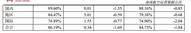 注:1、以上数据包括海南航空股份有限公司、中国新华航空有限责任公司、长安航空有限责任公司、山西航空有限责任公司、云南祥鹏航空有限责任公司、福州航空有限责任公司、乌鲁木齐航空有限责任公司、天津航空有限责任公司和北部湾航空有限责任公司的生产运输统计数据;