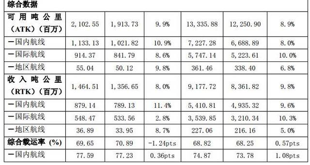 货运方面,2017年6月公司货运运力投入(按可用货邮吨公里计)同比上升11.3%;货邮周转量(按货邮载运吨公里计)同比上升6.1%;货邮载运率为37.3%,同比下降1.84个百分点。