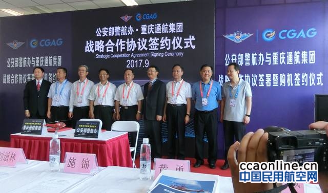 中国民用航空网讯:2017年9月14日上午,在中国天津第四届国际直升机博览会上,中华人民共和国公安部警用航空管理办公室(以下简称“公安部警航办”)与重庆通用航空产业集团有限公司(以下简称“重庆通航集团”),签署战略合作协议。此次签约,标志着重庆通航集团服务中国警航事业建设发展全面启动。