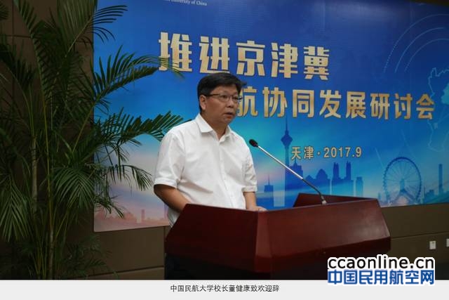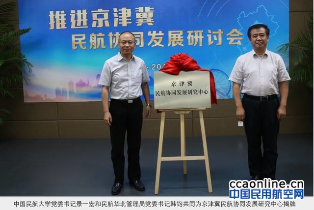 中国民用航空网讯:9月20日,推进京津冀民航协同发展研讨会在中国民航大学召开。会上,中国民航大学党委书记景一宏和民航华北管理局党委书记韩钧共同为京津冀民航协同发展研究中心揭牌,中国民航大学校长董健康、韩钧分别致辞,并就推进京津冀民航协同发展开展专题研讨。中国民航大学党委副书记于剑主持大会。