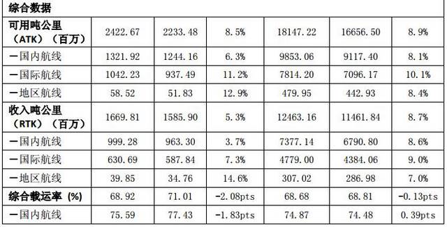 注:1.因中国东方航空股份有限公司(以下简称“公司”)已于2017年2月初完成向控股股东中国东方航空集团公司下属全资子公司东方航空产业投资有限公司(以下简称“东航产投”)转让东方航空物流有限公司(以下简称“东航物流”)100%股权,自2017年2月起公司当月及以后月度的货运及综合月度数据将不再包含全货机货运数据,仅为客机腹舱货运数据;去年同期数据亦不再包含全货机货运数据,调整为可比口径。