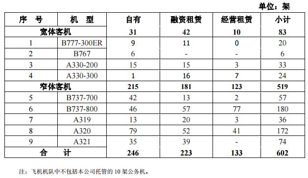 因公司于2017年2月初完成向东航产投转让东航物流100%股权,公司机队数据不再包含东航物流下属控股子公司中货航运营的货机数据。截至2017年8月末,公司飞机机队情况如下: