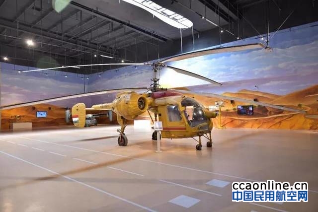 沙漠馆展示的是直升机真机及模型,配有支奴干、Ka-26、阿帕奇、鱼鹰、K-MAX、MD902等各类直升机10多架,沙漠馆墙面彩绘形象逼真,经过投影照射能够显示沙土飞扬,驼队穿行的壮观景象。