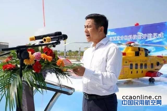 北京通航江西直升机公司总经理徐大淼在致辞中,介绍了江西直升机发展情况和江西直升机科技馆的特点。他说,江西直升机科技馆将圆景德镇市民直升机科技梦、直升机飞天梦和直升机就业梦。他期待江西直升机科技馆成为广大市民,特别是青少年普及航空科普知识、体验航空飞行的文化旅游基地。