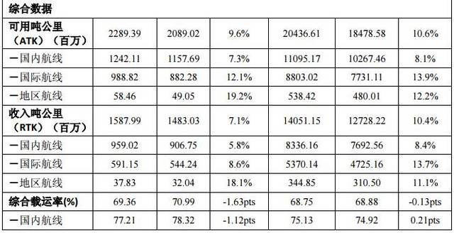 货运方面,2017年9月,公司货运运力投入(按可用货邮吨公里计)同比上升8.9%;货邮周转量(按货邮载运吨公里计)同比上升1.4%;货邮载运率为38.4%,同比下降2.83个百分点。