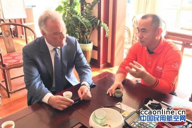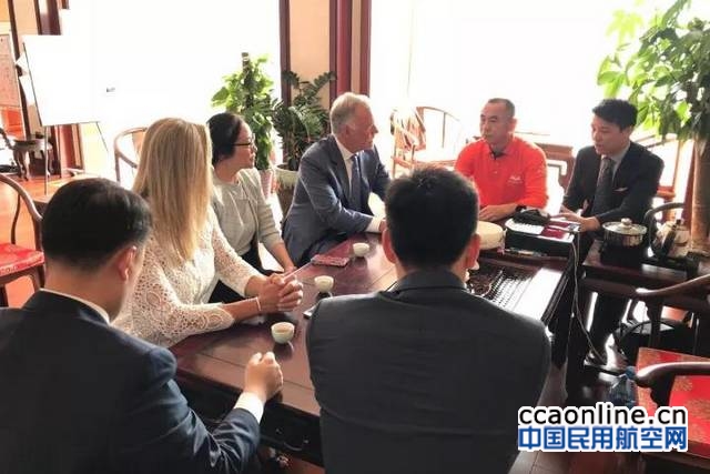 中国民用航空网讯:2017年10月25日上午,美国GECAS公司总裁Alec Burger一行前往金汇通航总部进行参观考察,与金汇通航董事长邹建明进行深入交流并达成战略合作。