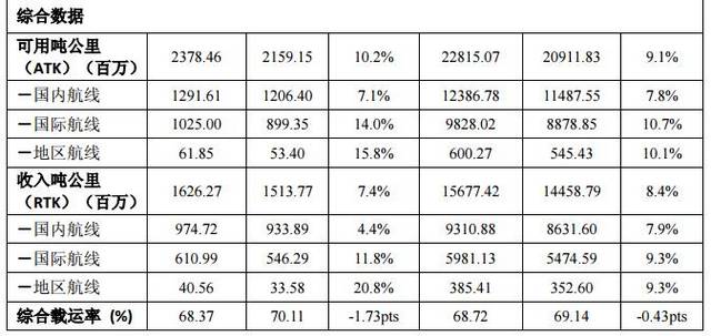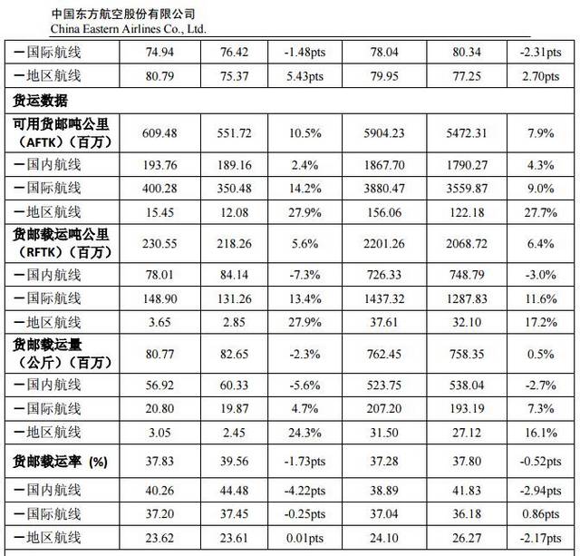 货运方面,2017年10月公司货运运力投入(按可用货邮吨公里计)同比上升10.5%;货邮周转量(按货邮载运吨公里计)同比上升5.6%;货邮载运率为37.83%,同比下降1.73个百分点。