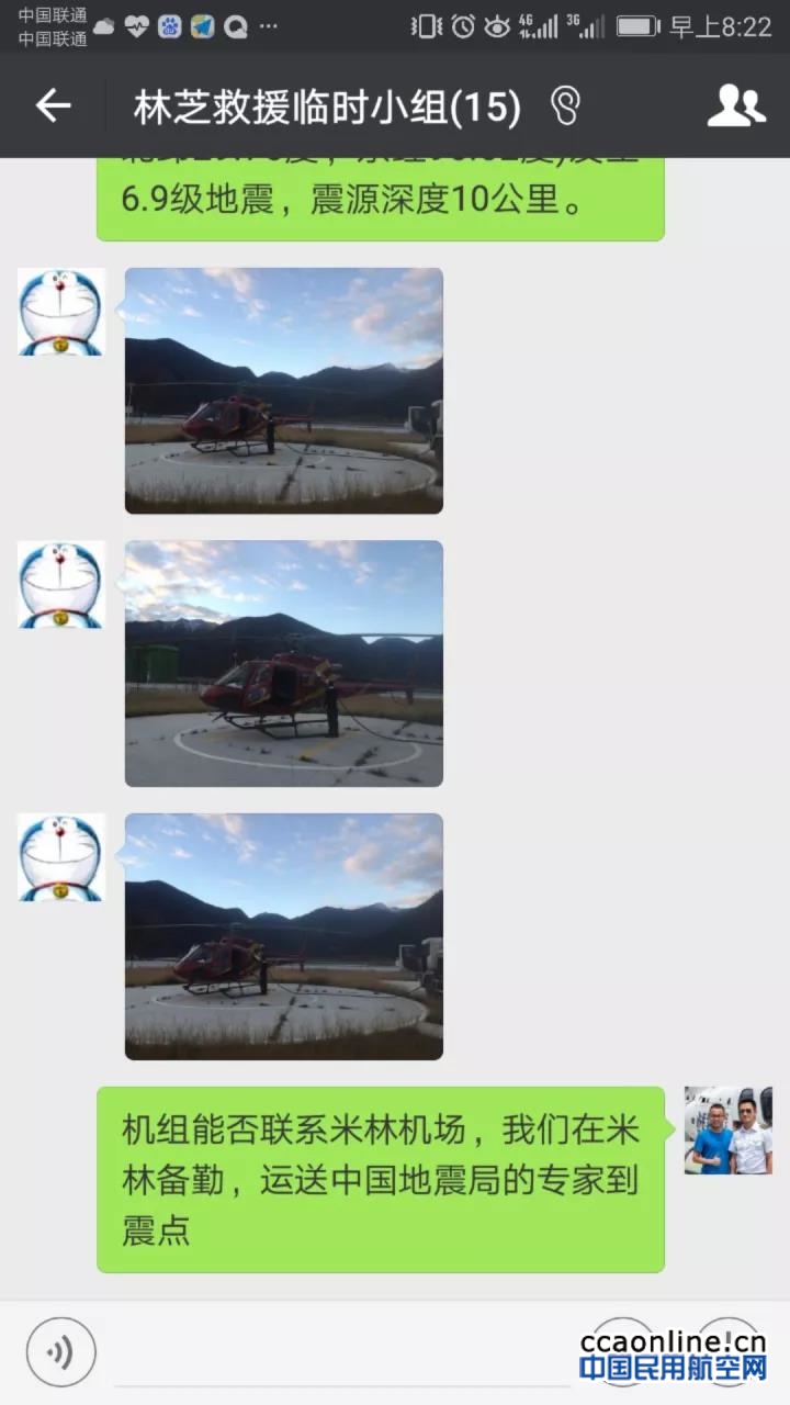 西藏西林凤腾通航第一时间启动应急预案,联合林芝当地政府成立工作小组,召开协调会,制定飞行计划,商讨救援方案,争取第一时间调派一架空客H125型直升机搭载地震专家、空运食物、药品等救援物资前往地震现场。