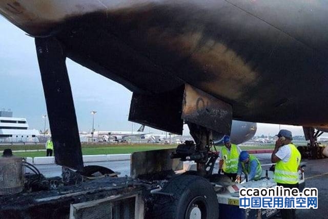 一辆拖着新加坡航空公司客机的飞机拖车11月29日清晨不知何故突然起火燃烧,浓烟熏黑了客机部分机身,所幸无人在事故中受伤。这起事故的起因目前还在调查中。
