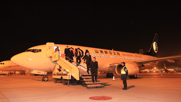 参加试飞的机组人员走下飞机