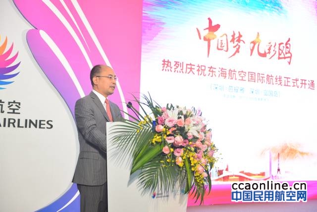 在深圳宝安国际机场候机大厅举办的首航仪式上,深圳市交委领导、民航深圳监管局领导、深圳机场领导,泰国旅游局领导、越南旅游局领导、东海集团董事长黄楚标、东海航空代理总裁杨建红,以及经营合作方代表、新闻媒体记者和现场旅客一同见证了东海航空国际航线首航这一重要时刻。