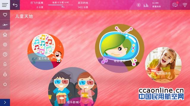 新系统升级了多项功能,例如“我的最爱”,可收藏个人喜好的影视节目和音乐,供旅客在休息、用餐后继续收看、收听。在电影频道,还新增了“猜你喜欢”功能,系统根据旅客观看历史记录以及偏好推荐相关电影。新系统屏幕顶端还新增了“信息”推送栏,在接收到中转信息后,会提醒旅客查看中转信息。旅客还可以在此查看到客舱乘务员发给全体旅客或个人专属的信息。值得一提的是,新系统特设了“儿童天地”频道,集合了适合儿童旅客的电影、音乐、游戏等,且界面生动活泼富有童趣。